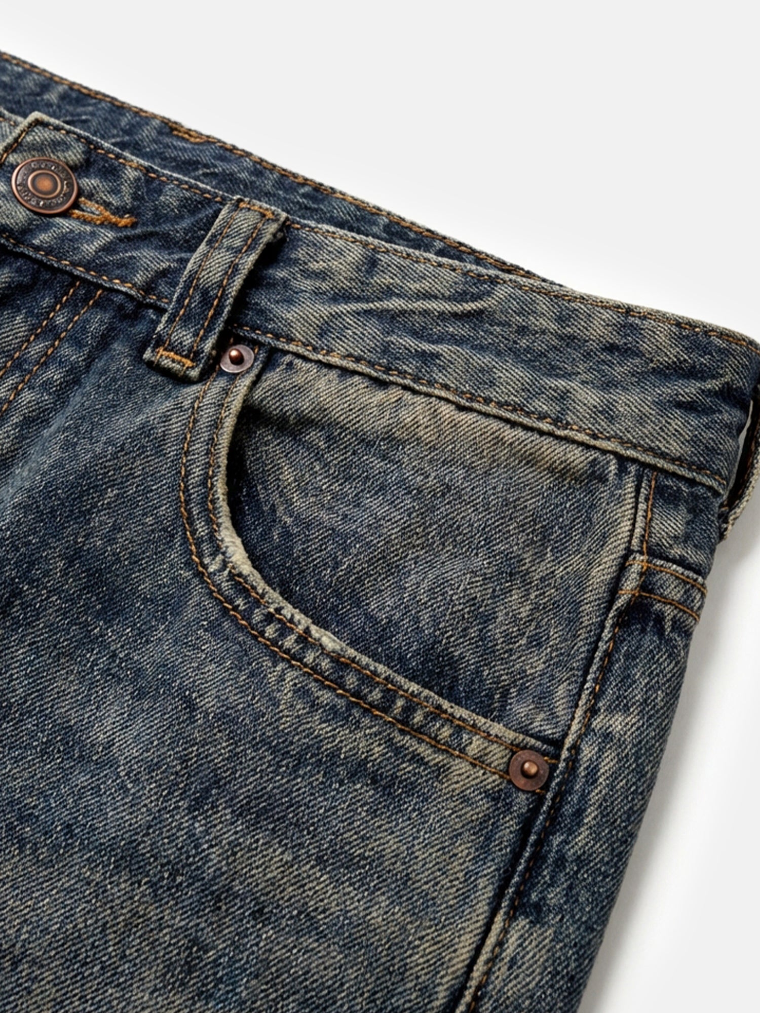 Classic wide-leg denim with a retro faded finish for everyday wear.