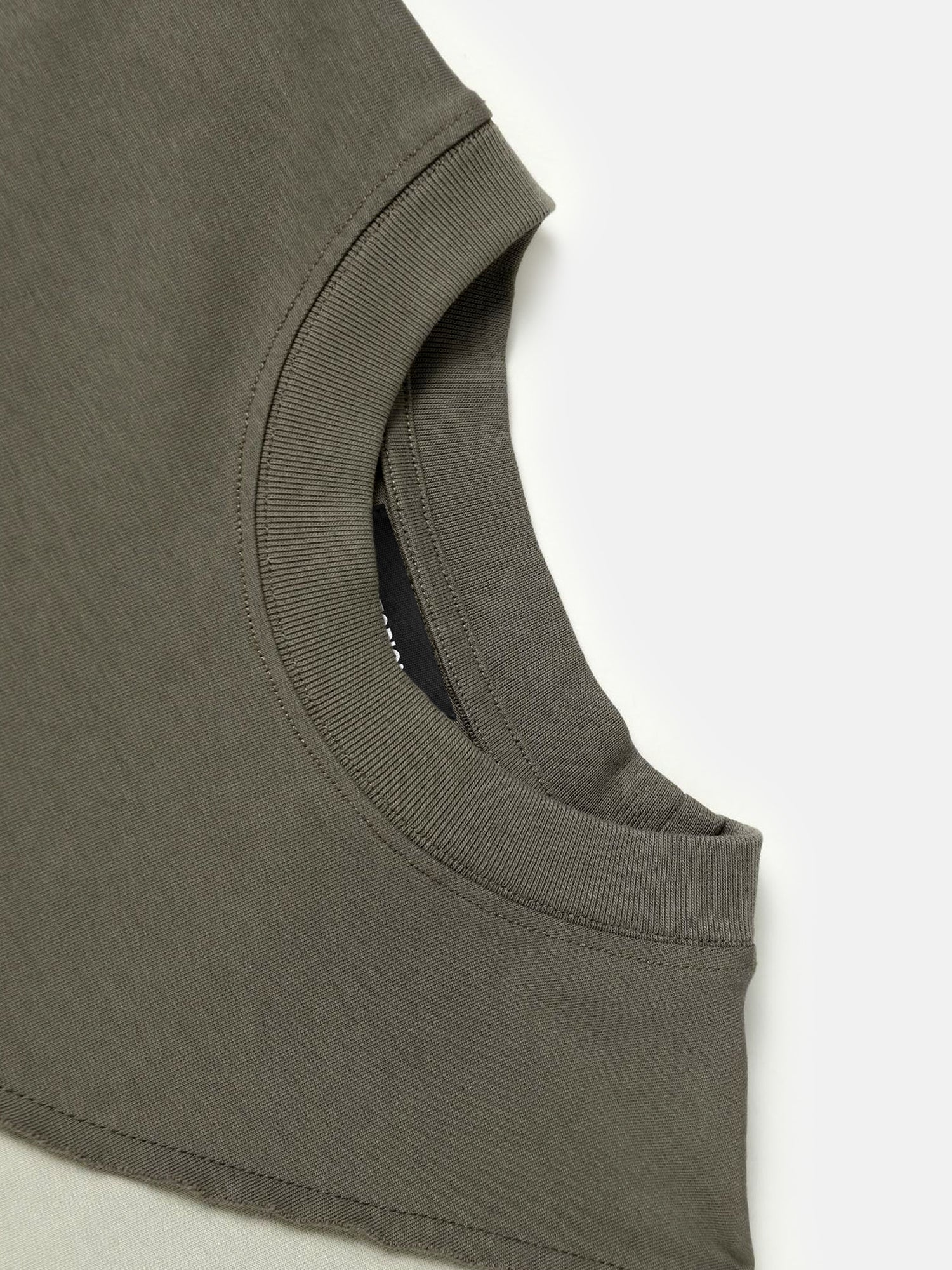 Verleihen Sie Ihrem urbanen Look mit einer Silhouette, die sich jeder Symmetrie entzieht, einen neuen Touch. Dieses schwere Kleidungsstück vereint raue, industrielle Texturen mit einem kalkulierten, avantgardistischen Fall.