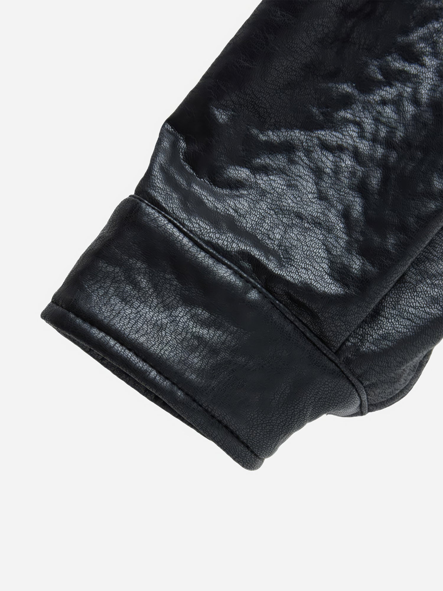 Diese schwarze Jacke vereint markantes Industriedesign mit raffiniertem Streetwear-Luxus. Die strukturierte Silhouette und die robuste Verarbeitung machen sie zu einem herausragenden Kleidungsstück für den Lagenlook, das Funktionalität und Eleganz perfekt verbindet.